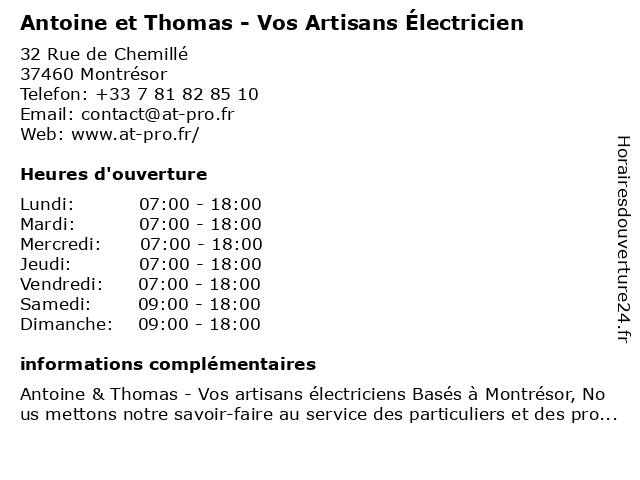 | Lundi | 07:00-18:00 |