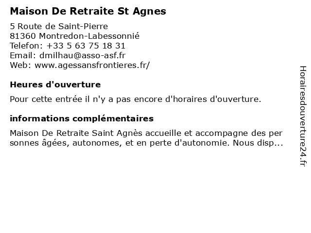 | Appeler Maison De Retraite St Agnes | |
