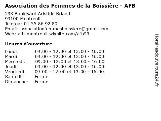 | Mardi | 09:00-12:00 et 13:00-16:00 |