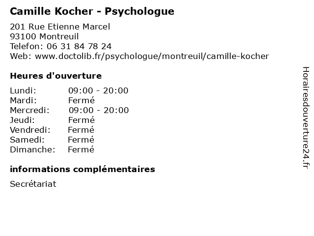 | Lundi | 09:00-20:00 |