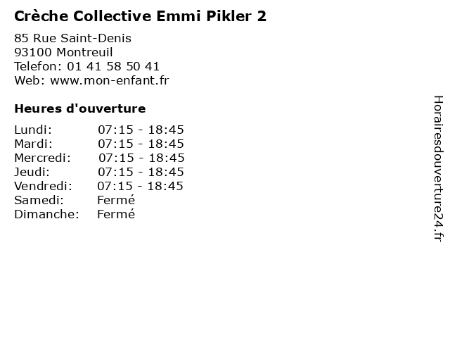 1 Multi Accueil Emmi Pikler (Distance: 0,00 km) 85 Rue Saint-Denis, 93100 Montreuil accueil, caregivers houses, child care, emmi, family home, home care, kindergartens, micro-nurseries, multi, parental home, pikler 2 Multi Accueil Emmi Pikler - l'accueil occasionnel (Distance: 0,00 km) 85 Rue Saint-Denis, 93100 Montreuil accueil, caregivers houses, child care, emmi, family home, home care, kindergartens, l'accueil, micro-nurseries, multi, occasionnel, parental home, pikler 3 Crèche et multi-accueil Emmi-Pikler (Distance: 0,00 km) 85 Rue Saint-Denis, 93100 Montreuil accueil, crèche, emmi, enfant, et, garde d'enfants, jardin d'enfants, multi, pikler, pédagogie, soins toute la journée 4 Mon-enfant.fr - Crèche Municipale (Distance: 3,05 km) 14 / 16 Rue de Noisy le Sec, 75020 Paris caregivers houses, child care, crèche, enfant.fr, family home, home care, kindergartens, micro-nurseries, mon, municipale, parental home 5 Jardin Emmi-Pikler (Du 29 octobre au 28 février) (Distance: 4,28 km) 4 rue des Rigoles, 75020 Paris 28, 29, au, du, emmi, février, jardin, octobre, parc, pikler, square 6 Jardin Emmi-Pikler (Du 01 au 24 mars) (Distance: 4,28 km) 4 rue des Rigoles, 75020 Paris 01, 24, au, du, emmi, jardin, mars, parc, pikler, square |