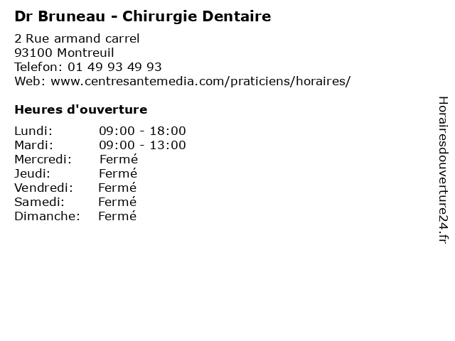 | Mercredi | Fermé |