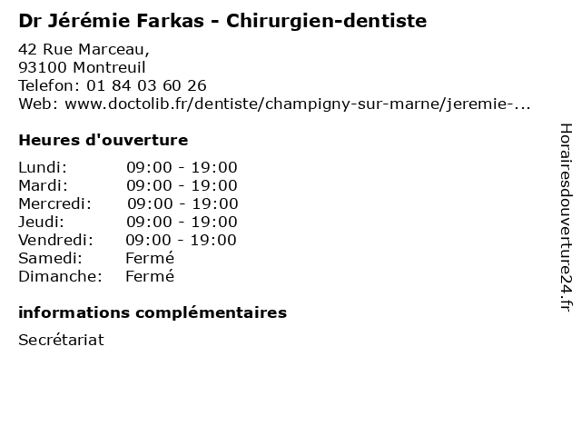 | Lundi | 09:00-19:00 |
