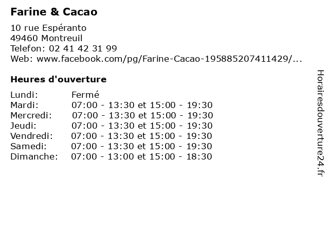 Termes de recherche pour Farine & Cacao:sandwich, boulangerie, pâtisserie, cacao, farine |
