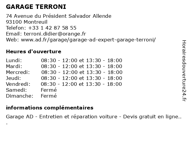 | Lundi | 08:30-12:00 et 13:30-18:00 |