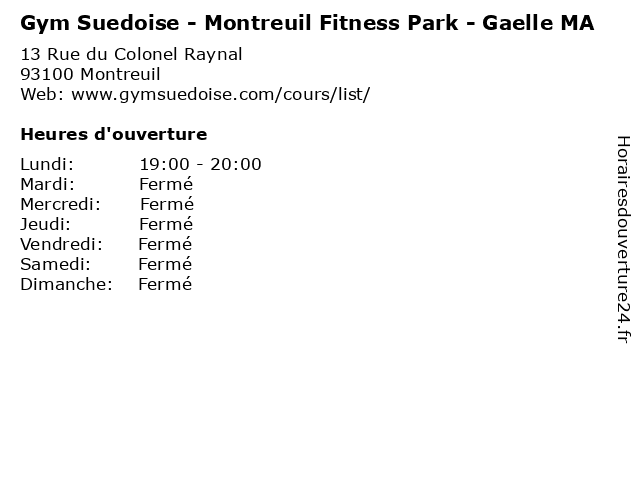 1 Gym Suedoise - Montreuil Fitness Park - François B (Distance: 0,00 km) 13 Rue du Colonel Raynal, 93100 Montreuil centre, club, cours, fitness, françois, gym, l'exercice, la santé, le sport, les muscles, levallois, montreuil, park, seniors, sporting, stretch, suedoise, yoga&gym 2 Manet - Ma Net (Distance: 2,24 km) 60 Rue Marie Anne Colombier, 93170 Bagnolet lavage, ma, manet, net, nettoyage, services, vitres 4 Lulu Dans Ma Rue (Distance: 2,76 km) 6 place Gambetta, 75020 Paris conciergerie, courses, dans, kiosque, lulu, ma, ménages, quartier, rue, services 5 MA Dunant - Lieu d'accueil enfants-parents (Distance: 2,78 km) 38 Boulevard du Général Leclerc, 93260 Les Lilas d'accueil, dunant, enfants, famille, jardin d'enfants, lieu, ma, maison, parents, soins, ville 6 Crèche multi-accueil Liveli - Ma Petite Île (Distance: 3,12 km) 83 Avenue Philippe Auguste, 75011 Paris accueil, creche, crèche, enfant, garderie, liveli, ma, multi, petite, éveil, île |