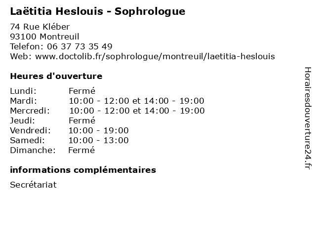 | Mercredi | 10:00-12:00 et 14:00-19:00 |