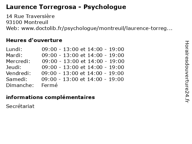 | Lundi | 09:00-13:00 et 14:00-19:00 |