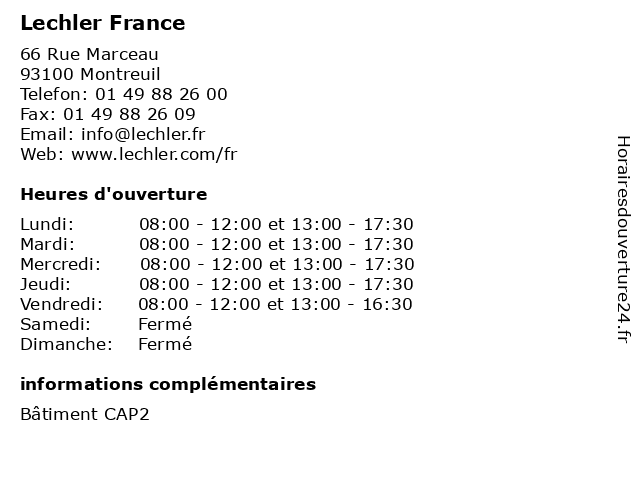 | Lundi | 08:00-12:00 et 13:00-17:30 |