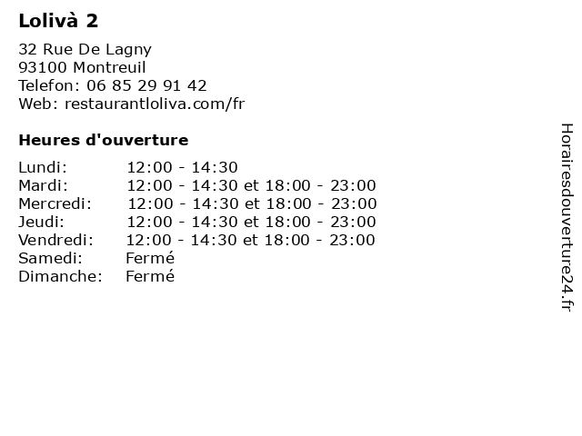 | Mardi | 12:00-14:30 et 18:00-23:00 |