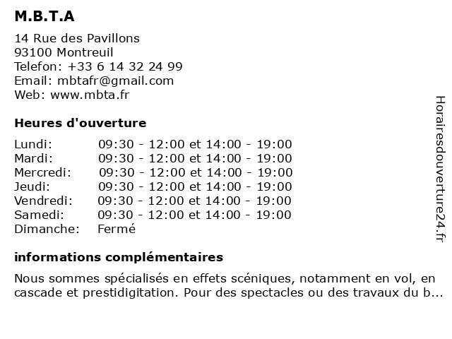 Images pour l'entreprise M.B.T.A à Montreuil