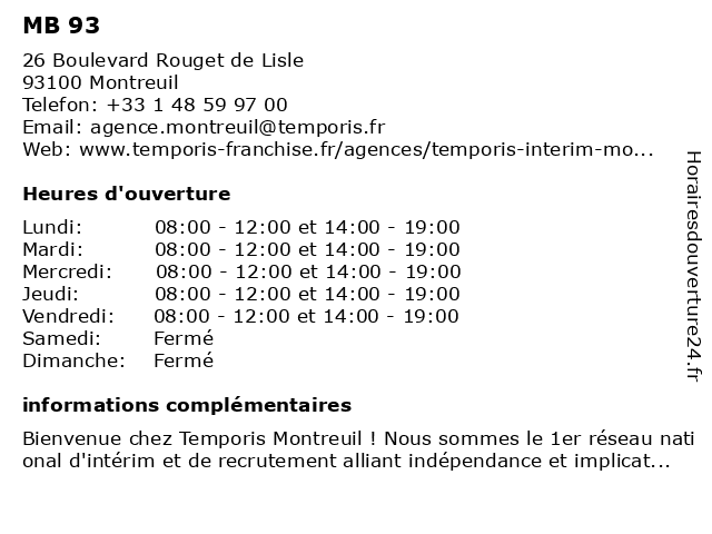 | Lundi | 08:00-12:00 et 14:00-19:00 |