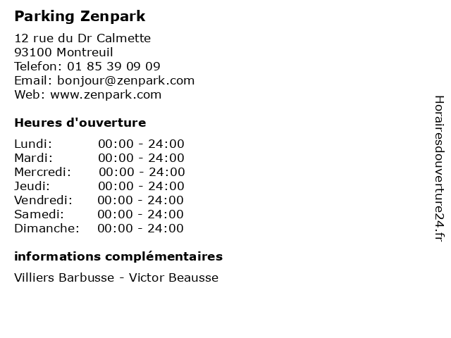 1 Parking Zenpark (Distance: 0,84 km) 85 rue Victor Hugo, 93100 Montreuil parking, place, stationnement, voiture, zenpark 2 Parking Zenpark (Distance: 1,56 km) 23 rue François Arago, 93100 Montreuil parking, place, stationnement, voiture, zenpark 3 Parking Zenpark (Distance: 1,96 km) 1 avenue de la République, 93170 Bagnolet parking, place, stationnement, voiture, zenpark 4 Parking Zenpark (Distance: 6,01 km) 110 Rue de l'Ourcq, 75019 Paris parking, place, stationnement, voiture, zenpark 5 Parking Zenpark (Distance: 6,78 km) 6 rue de l'Essai, 75005 Paris parking, place, stationnement, voiture, zenpark 6 Parking Zenpark (Distance: 7,53 km) 163 boulevard Haussmann, 75008 Paris parking, place, stationnement, voiture, zenpark |