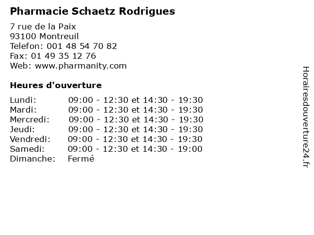 | Lundi | 09:00-12:30 et 14:30-19:30 |