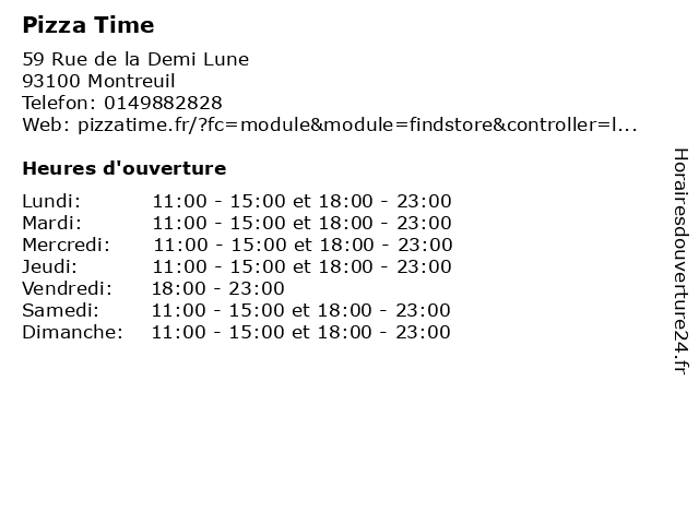 | Lundi | 11:00-15:00 et 18:00-23:00 |