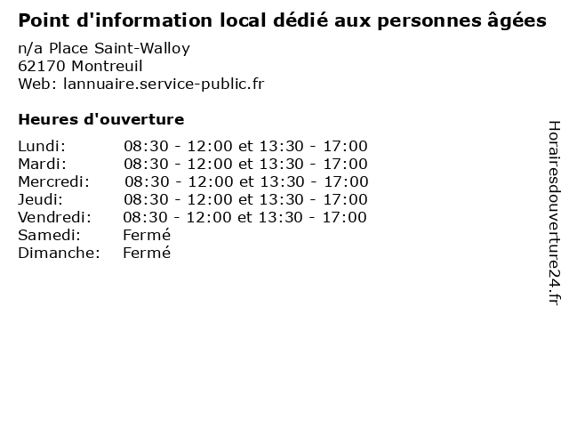 | Lundi | 08:30-12:00 et 13:30-17:00 |