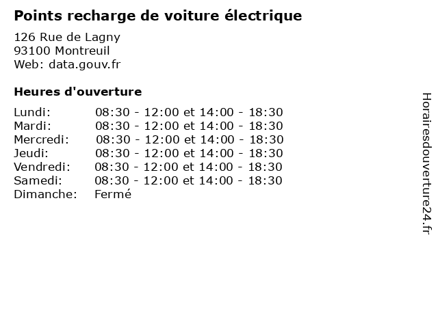 | Lundi | 08:30-12:00 et 14:00-18:30 |