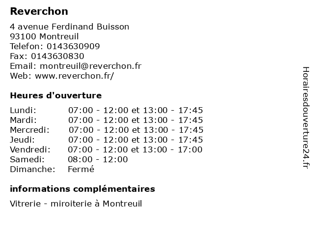 | Lundi | 07:00-12:00 et 13:00-17:45 |