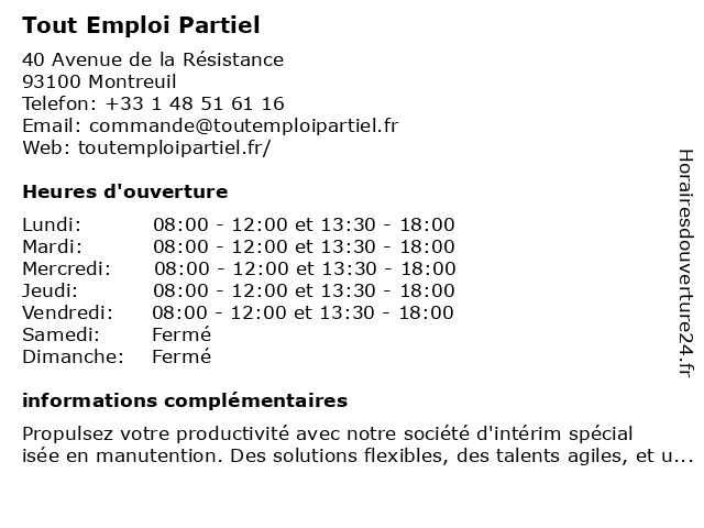 | Lundi | 08:00-12:00 et 13:30-18:00 |
