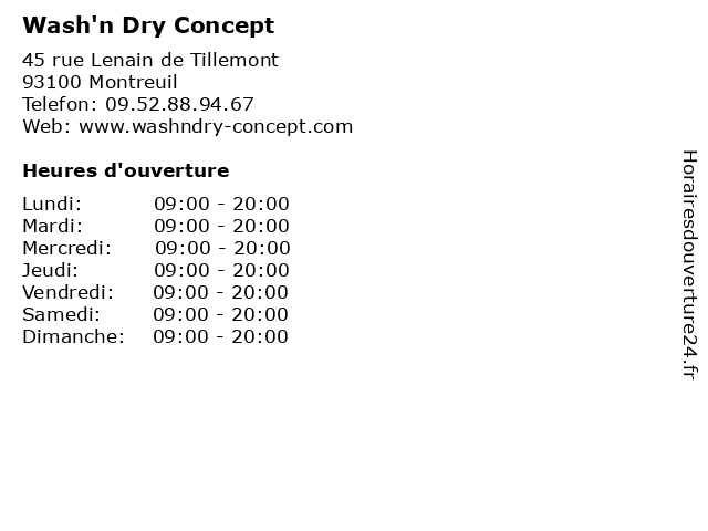 1 Wash'n Dry Concept (Distance: 1,99 km) 54 rue de Vincenne, 93100 Montreuil automatique, concept, dry, lavage, service, séchage, wash'n 2 Wash'n Dry Concept (Distance: 5,63 km) 70 rue Léon Frot, 75011 Paris automatique, concept, dry, lavage, service, séchage, wash'n 3 Wash'n Dry Concept (Distance: 6,15 km) 59 rue du Pont de Créteil, 94100 Saint Maur Des Fosses automatique, concept, dry, lavage, service, séchage, wash'n 4 Wash'n Dry Concept (Distance: 6,71 km) 37 boulevard de Brandebourg, 94200 Ivry Sur Seine automatique, concept, dry, lavage, service, séchage, wash'n 5 Wash'n Dry Concept (Distance: 10,28 km) 162 rue Gabriel Péri, 94250 Gentilly automatique, concept, dry, lavage, service, séchage, wash'n 6 Wash'n Dry Concept (Distance: 12,11 km) 8 avenue Victor Hugo, 92220 Bagneux automatique, concept, dry, lavage, service, séchage, wash'n |