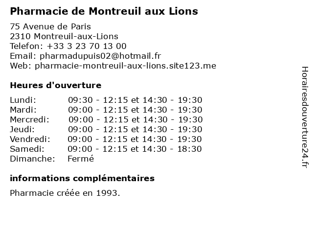| Mardi | 09:00-12:15 et 14:30-19:30 |