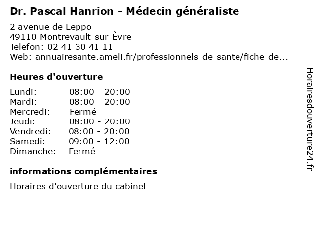 | Vendredi | 08:00-20:00 |