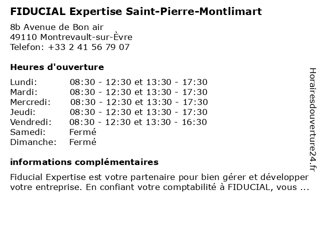 | Lundi | 08:30-12:30 et 13:30-17:30 |
