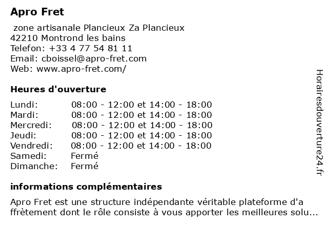 | Lundi | 08:00-12:00 et 14:00-18:00 |