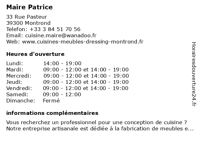 | Mercredi | 09:00-12:00 et 14:00-19:00 |