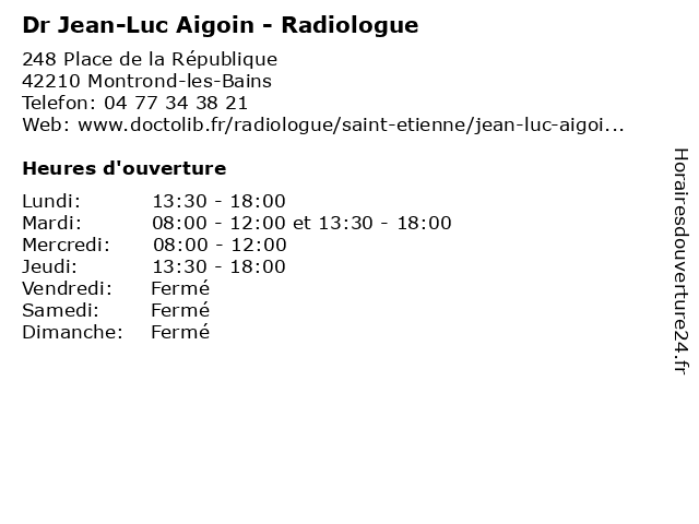 | Mardi | 08:00-12:00 et 13:30-18:00 |