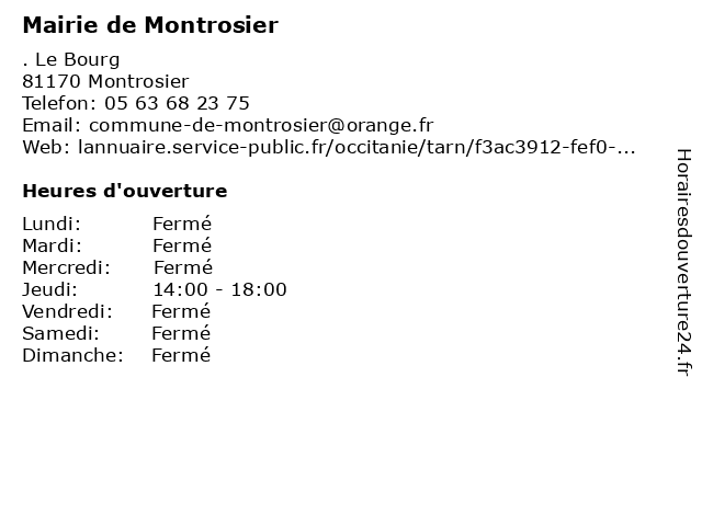 Termes de recherche pour Mairie de Montrosier:de, administration, mairie, assoc public, montrosier |