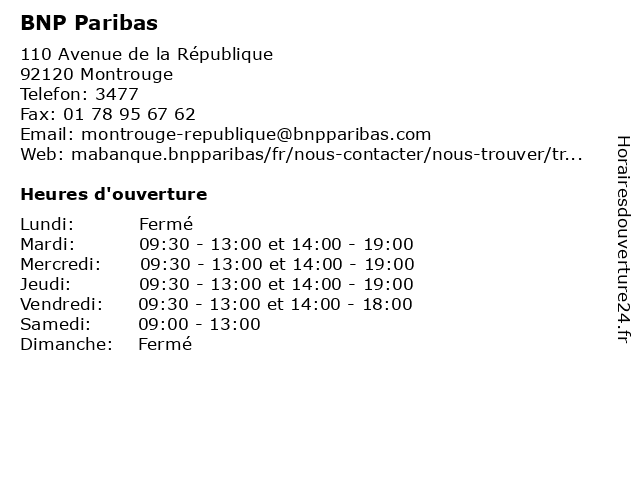 1 BNP Paribas (Distance: 0,70 km) - Place Gabrielle de Guerchy, 92120 Montrouge agence, assurance, bancaire, banque, bnp, crédit, paribas, pret 2 BNP Paribas (Distance: 1,33 km) 34 Avenue Henri Barbusse, 92220 Bagneux agence, assurance, bancaire, banque, bnp, crédit, paribas, pret 3 Bnp Paribas (Distance: 3,07 km) 20 Boulevard Vaugirard, 75015 Paris argent, banques, bnp, paribas, épargne 4 BNP Paribas (Distance: 3,25 km) 19 Rue de Vanves, 92140 Clamart agence, assurance, bancaire, banque, bnp, crédit, paribas, pret 5 Bnp Paribas (Distance: 3,42 km) 40 Boulevard du Montparnasse, 75015 Paris argent, banques, bnp, paribas, épargne 6 BNP Paribas (Distance: 3,51 km) 130 Boulevard Massena, 75013 Paris agence, assurance, bancaire, banque, bnp, paribas |