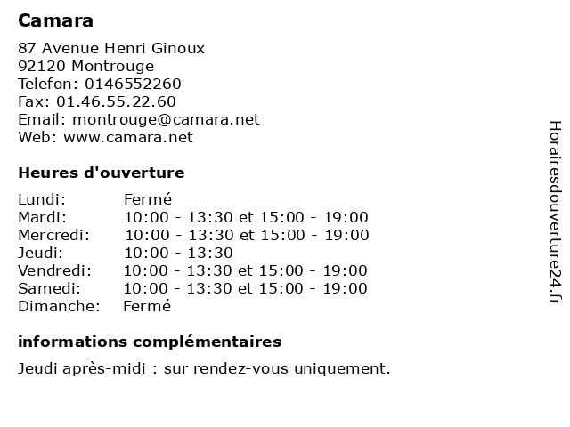 1 Camara (Distance: 2,91 km) 14-16 Boulevard Blanqui, 75013 Paris accessories, audio, camara, camcorders, photo, printing, video 2 Camara (Distance: 3,57 km) 30 Rue Boucicaut, 92260 Fontenay-aux-Roses camara, camera, canon, films, fujifilm, impression, objectifs, photo, qualite, tirages 3 Camara (Distance: 4,14 km) 11 Rue Georges le Bigot, 94800 Villejuif camara, camera, canon, films, fujifilm, impression, objectifs, photo, qualite, tirages 4 Camara (Distance: 7,18 km) 31 avenue Mac Mahon, 75017 Paris camara, camera, canon, films, fujifilm, impression, objectifs, photo, qualite, tirages 5 Camara (Distance: 7,58 km) 72 Rue De Rochechouart, 75009 Paris accessories, audio, camara, camcorders, photo, printing, video 6 Camara (Distance: 9,72 km) 54 Boulevard du Général Leclerc, 92110 Clichy camara, camera, canon, films, fujifilm, impression, objectifs, photo, qualite, tirages |