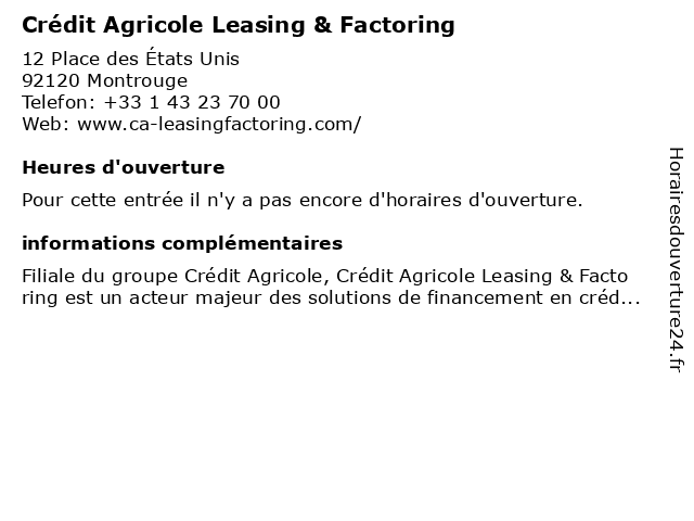 | Appeler Crédit Agricole Leasing & Factoring | |
