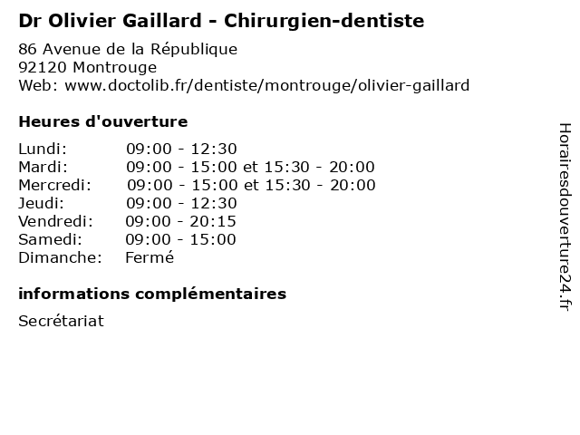 | Mercredi | 09:00-15:00 et 15:30-20:00 |