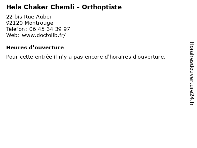 | Appeler Hela Chaker Chemli - Orthoptiste | |