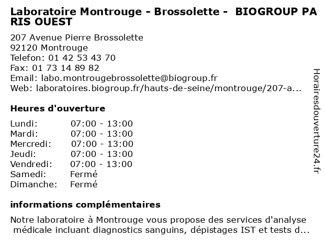 Termes de recherche pour Laboratoire Montrouge - Brossolette - BIOGROUP PARIS OUEST:montrouge, paris, laboratoire, ouest, brossolette, biogroup, dépistages, laboratoire de diagnostic |