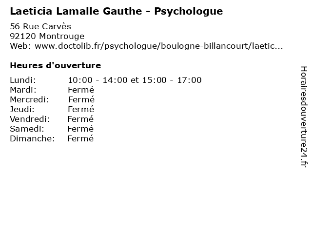 | Lundi | 10:00-14:00 et 15:00-17:00 |