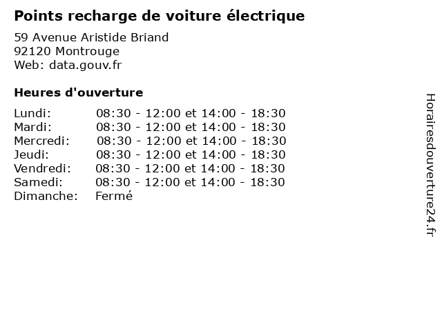 | Lundi | 08:30-12:00 et 14:00-18:30 |