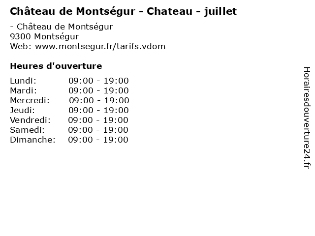 | Lundi | 09:00-19:00 |