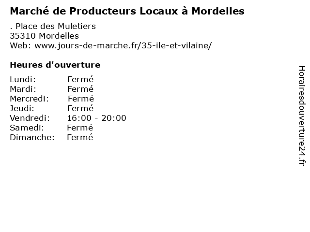 | Vendredi | 16:00-20:00 |