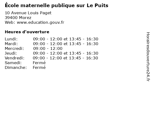 | Mardi | 09:00-12:00 et 13:45-16:30 |