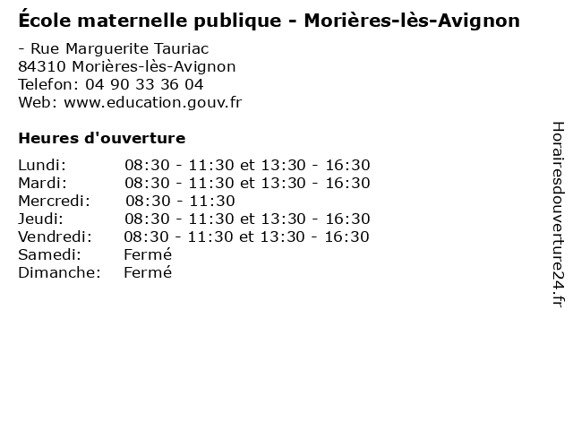 | Mardi | 08:30-11:30 et 13:30-16:30 |