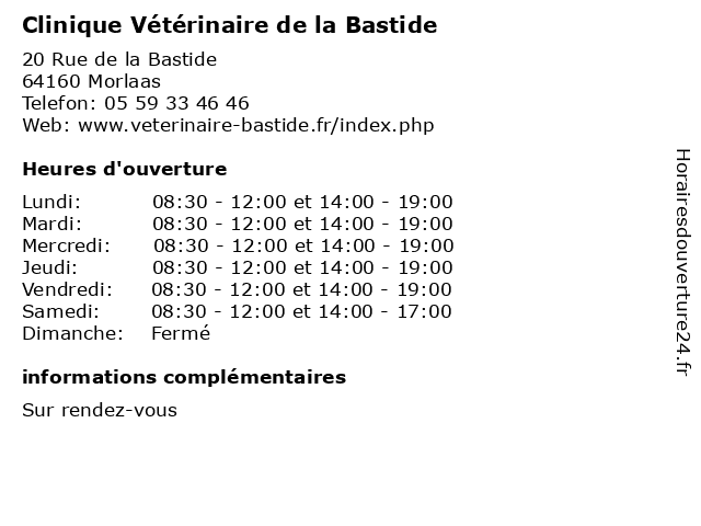 | Lundi | 08:30-12:00 et 14:00-19:00 |