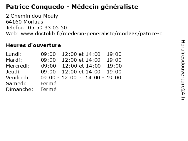 | Lundi | 09:00-12:00 et 14:00-19:00 |