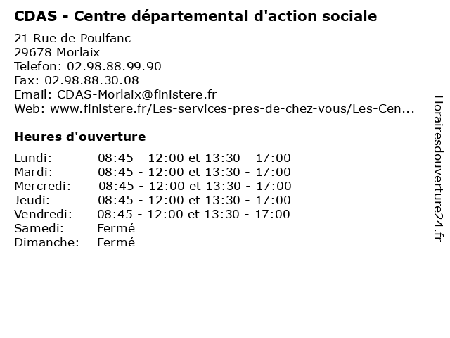 1 CDAS - Centre départemental d'action sociale (Distance: 0,00 km) 36 rue de Brest, 29830 Ploudalmézeau action, cdas, centre, d'action, départemental, départementaux, sociale 2 CDAS - Centre départemental d'action sociale (Distance: 16,52 km) 29 Rue des Carmes, 29250 Saint-Pol-de-Léon action, antenne, cdas, centre, d'action, de, départemental, départementaux, landivisiau, léon, pol, saint, sociale 3 Centre départemental d'action sociale CDAS de MORLAIX (Distance: 0,01 km) 22 Rue du Poulfanc, 29600 Morlaix cdas, centre, d'action, de, départemental, morlaix, sociale 4 Centre Communal d'Action Sociale - CCAS (Distance: 0,57 km) 29 Rue de Brest, 29600 Morlaix action, ccas, centre, communal, d'action, sociale 5 Analyse & Action - MORLAIX (Distance: 0,59 km) 18 Place des Otages, 29600 Morlaix action, analyse, morlaix 6 Orient'Action (Distance: 0,78 km) 19 Place Charles de Gaulle, 29600 Morlaix bilans, compétences, orient'action, professionnel, recrutement |