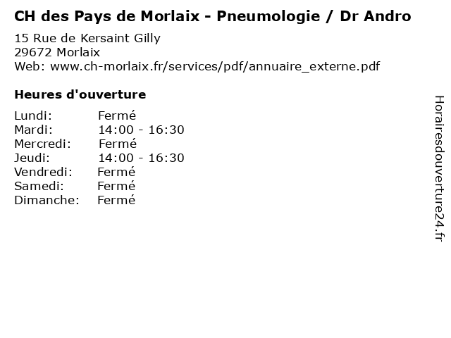 Termes de recherche pour CH des Pays de Morlaix - Pneumologie / Dr Andro:de, morlaix, des, bureau, med, medecine, pays, maladie, ch, traitement, pneumologie, médecin, consultation, dr, pratique, therapie, andro |