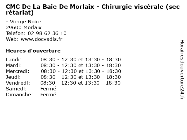 Termes de recherche pour CMC De La Baie De Morlaix - Chirurgie viscérale (secrétariat):la, de, morlaix, santé, cmc, baie, secretariat, chirurgie, viscérale, docteur, consultation |