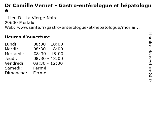 1 Medecin Frederic Lenormand (hépatologue) (Distance: 0,45 km) . Vierge Noire, 29600 Morlaix docteur, frederic, hépatologue, lenormand, medecin, sante, services 2 Dr Camille Filipot - Gastro-entérologue et hépatologue (Distance: 0,46 km) - Lieu Dit La Vierge Noire, 29600 Morlaix camille, dr, enterelogue, entérologue, et, filipot, gastro, hepatolgue, hépatologue, soins 3 Medecin Alain Gourlaouen (hépatologue) (Distance: 2,36 km) 15 Kersaint Gilly, 29205 Morlaix alain, docteur, gourlaouen, hépatologue, medecin, sante, services 4 CH des Pays de Morlaix - Hépato-gastro-entérologie / Dr Gourlaouen (Publiques) (Distance: 2,36 km) 15 Rue de Kersaint Gilly, 29672 Morlaix bureau, ch, consultation, de, des, dr, entérologie, gastro, gourlaouen, hépato, maladie, med, morlaix, médecin, médecine, pays, pratique, publiques, thérapie, traitement 5 CH des Pays de Morlaix - Hépato-gastro-entérologie / Dr Gourlaouen (Privées) (Distance: 2,36 km) 15 Rue de Kersaint Gilly, 29672 Morlaix bureau, ch, consultation, de, des, dr, entérologie, gastro, gourlaouen, hépato, maladie, med, morlaix, médecin, médecine, pays, pratique, privées, thérapie, traitement 6 CH des Pays de Morlaix - Hépato-gastro-entérologie / Dr Jego (Distance: 2,36 km) 15 Rue de Kersaint Gilly, 29672 Morlaix bureau, ch, consultation, de, des, dr, entérologie, gastro, hépato, jego, maladie, med, morlaix, médecin, médecine, pays, pratique, thérapie, traitement |