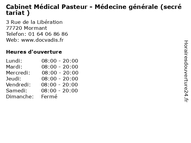 | Samedi | 08:00-20:00 |